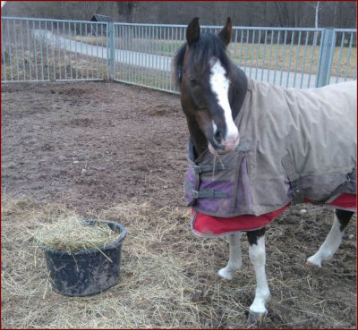 der Heuballen leer gewesen und ich muss wieder aus Netz und Schubkarre füttern,