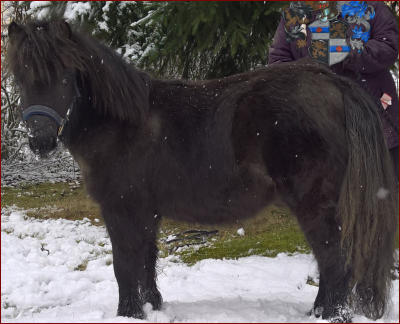 Rein zum äußerlichen:- Tiny ist ein Orginal Shetlandpony- Er ist von der Fellfarbe ein Rappe- Er hat keine AbzeichenTiny wurde von seiner Mutter 2017 in der Herde zur Welt gebracht. Sein Stockmaß beträgt zurzeit ca 0,90m, was sich aber noch ändern wird, da er sich noch im Wachstum befindet.